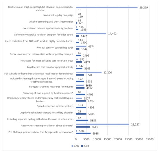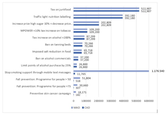 Chicago/Turabian Stylevan der Vliet, Nina, Anita W.M. Suijkerbuijk, Adriana T. de Blaeij, G. Ardine de Wit, Paul F. van Gils, Brigit A.M. Staatsen, Rob Maas, and Johan J. Polder. 2020. "Ranking Preventive Interventions from Different Policy Domains: What Are the Most Cost-Effective Ways to Improve Public Health?" International Journal of Environmental Research and Public Health 17, no. 6: 2160. https://doi.org/10.3390/ijerph17062160