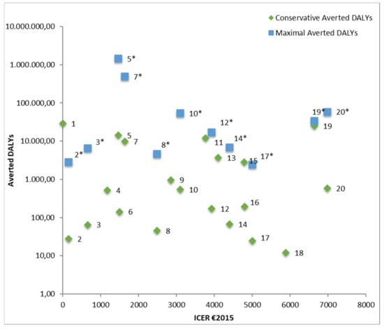 3.5. Ranking Interventions on a Conservative Estimate of DALYs Averted