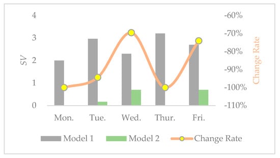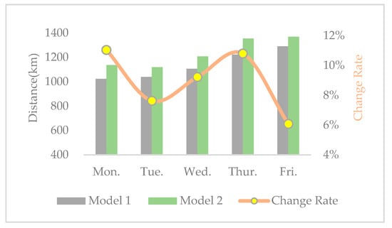 Detailed collection routes of model 1 and model 2 from Monday to Friday.