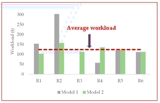 In addition to the consideration of the environmental component, the social benefits of MSW collection are also tackled in this paper. For most previous studies in MSW collection, lower operating costs and carbon emissions have been considered, but social sustainability is rarely mentioned [,]. After collecting a certain amount of waste, vehicles need to unload the waste at the recycling facilities. However, even if a schedule has low operating and fixed truck costs, it cannot be used unless a balanced assignment of collection trips to recycling facilities is attained []. If there are long queues at disposal facilities, greater costs and fuel consumption will result. Meanwhile, an unbalanced allocation of vehicles would also cause other waste disposal facilities to be in an idle state without any mission to undertake. Such a wide discrepancy of the workload has a negative effect on equity perceptions, which are beneficial for retaining employees in the organization [,]. Therefore, this paper aims at balancing the workload of each disposal facility, so as to reduce unnecessary fuel consumption and promote social equity.