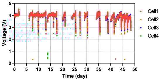 Figure 4 shows the charging/discharging cycles over a 50-day period of the four rechargeable batteries (used in sequence) for powering the LED lights during night time, indicating that MFC modules were producing sufficient power to maintain this operation.