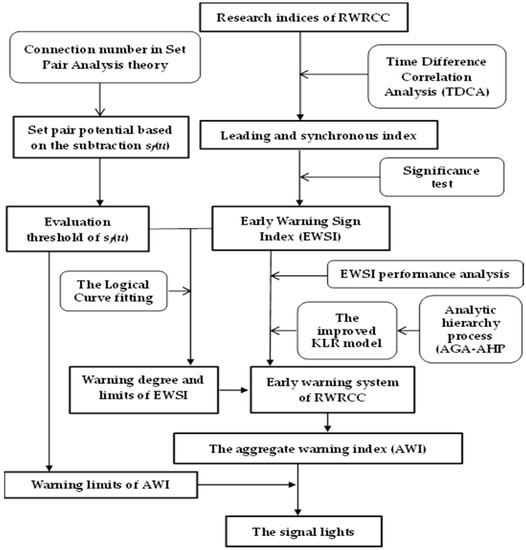 According to set pair analysis (SPA) theory, set pair potential based on the subtraction of connection numbers [27,28] can describe the relative deterministic state of objects at the current macro level. We used it as the benchmark index for EWS-RWRCC.