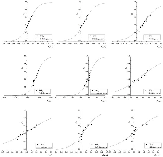 r(s, t) and yt are arranged from small to large, and they are fitted to the logical curve as follows: