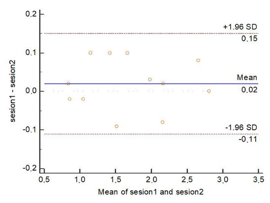Once test-retest reliability was analyzed, for enforcement in particular subjects and for utilization in clinical praxis, a high-rise value of intraclass correlation coefficient (ICC), 0.9–0.95, was accepted owing to the probability of increased measurement reliability [20,21].