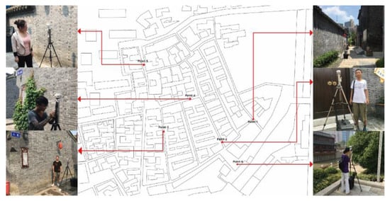 Considering the historical meaning and the importance of the heritage, the whole zone is divided into six parts for collecting data in accordance with different geometry, each point has typical meaning in this study [18] (Figure 3).