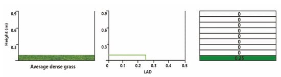 As opposed to other software, vegetation, including trees and grass, is grouped in accordance with its size, type and leaves, which are all essential factors for affecting radiation and reflection. As ENVI-met analyzes vegetation based on leaf area density (LAD) and not leaf area index (LAI), the following equation is used to show the relationship between the two parameters: