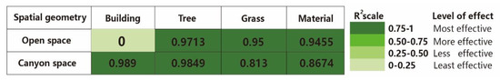 As mentioned above, the whole area consisted of open space and canyon space. The effectiveness of different parameters in open space is shown in Figure 17.