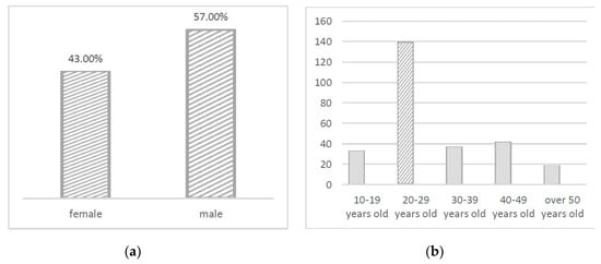 Figure 5. Visitor distribution. (a) Gender ratio; (b) Age ratio.