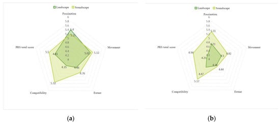 The soft/hard ratio had a significant positive correlation with each property. The effects of restorative characteristics of landscape perception are ranked as follows: Fascination > Compatibility > Extent > Being away. The effects of restorative characteristics of soundscape perception are ranked as follows: Extent > Fascination > Compatibility > Being away. Relative to the soft/hard ratio, the higher the proportion is, the larger the proportion of vegetated soft and hard surfaces are in a site, the more places there are for birds to inhabit, and the higher the diversity and recovery of birdsong species.