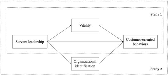 Employees engaging in customer-oriented behavior (COB) are becoming increasingly critical in service-oriented organizations []. Practically, increasing numbers of organizations seeking to differentiate themselves on the basis of superior customer service require their frontline service workers to display appropriate behaviors that meet the expectations of customers and deliver the service as well as increase customers’ satisfaction, commitment, and loyalty []. In this regard, scholars have investigated the predictors of COB and highlighted the role of certain leadership styles (e.g., transformational leadership and empowering leadership) in fostering the quality of service that employees deliver to their customers. Because a leader is the proximal influencer in social environments, how leader behavior is a model that influences employees’ behaviors is important to understand []. Along this line of research, a growing number of studies have suggested the benefits of servant leadership as a useful leadership approach to stimulate employees producing such desirable outcomes as service quality and organizational citizen behaviors []. Referring to “developing employees to their fullest potential in the area of task effectiveness, community stewardship, self-motivation, and future leadership capabilities” [] (p. 162), servant leadership is a people-centered leadership style that prioritizes serving both internal employees and external clients []. Leading by servant leadership, frontline service employees go beyond the boundary of self-interest and are held accountable for their customers’ benefits. However, previous studies provide limited evidence of the potential positive association between servant leadership and employees’ COB.