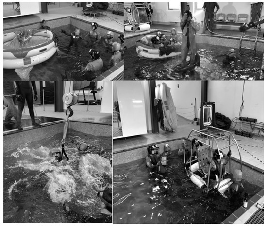 In the present work we analyzed 36 participants, 26 men and 10 women, (39.06 ± 9.01 years; 174.2 ± 7.35 cm; 76.4 ± 11.98 kg; 16.72 ± 9.34 years of service; 13.15 ± 14.32 months in mission; 182.28 ± 30.50 flying hours). Before participation, experimental procedures were explained to all the participants, who gave their voluntary written informed consent in accordance with the Declaration of Helsinki. All the procedures were approved by the University Ethics Committee. The entire research procedure was conducted by soldiers with the standard flying suit and boots, portable oxygen cylinder, life vest, helmets, and earphones to simulate the equivalent operating equipment for this type of action. None of the participants had previous or recent experience in these underwater simulations.