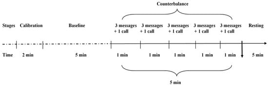 At the beginning of our study, the PI created a LINE link with every participant, and we used this app as the only tool to create social stimuli, make phone calls, and send the messages. All tests were performed while the participants were in a sound-attenuated and temperature-controlled room. Initially, both sound and vibration notifications were turned on before social media stimulation, and each smartphone was placed in a box on a table near the sofa. The sound and vibration of the smartphone could easily be perceived by each participant.