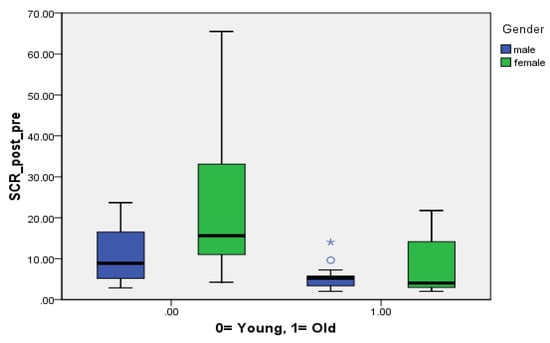 Age and gender on mean difference of SCR. (★) p < 0.05; (o) outlier.