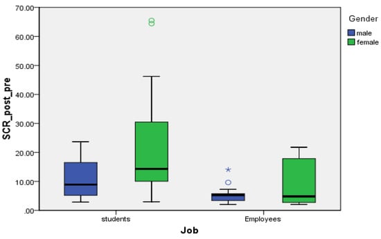 Job and gender on mean difference of SCR. (★) p < 0.05; (o) outlier.