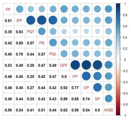 Correlation coefficient matrix of each variable (N = 1505). Note: PF indicates product facilities, IPF indicates individual preference framework, PQT indicates preferences for quantity, PR indicates preferences for rhythm, PQL indicates preferences for quality, GPF indicates group preference framework, FP indicates family preference, OP indicates organizational preference, SP indicates social preference, WSB indicates waste-sorting behavior.