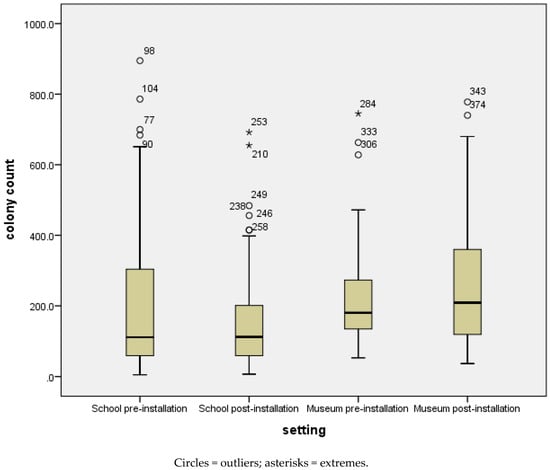 At the museum, the research team set up a data collection table at a discrete distance from the toilets. One member of the research team stayed at the table and collected data, while another member recruited children from outside the toilets. When a child exited the toilet their parent/carer was informed about the study and permission was asked to approach the child. If the child was interested in participating, they were escorted to the data collection table where their parent/carer were asked to sign a consent form. This approach meant that it was possible to analyse how effectively children had washed their hands after using the toilets. However, as the data collection took place in a public space some of the children who participated were possibly aware of the study prior to using the toilets, and this also could have influenced how well they washed their hands. However, the circumstance was the same for both pre- and post-installation samples and therefore the results are comparable.