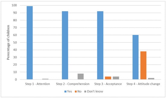 The PSG were only tested in settings involved in the co-design stage of the study. Though the child participants were sampled across each school and most had not participated in the co-design phase, they still could have felt an affiliation with the PSG that would not be felt in other settings. None of the children from the partner museum participated in the design of “123”. Furthermore, only four settings participated and so it is not clear how generalisable the results are. It is, however, prudent to pre-test interventions before rolling out major campaigns []. The evaluation results are sufficiently positive to warrant further evaluations in a large roll-out.