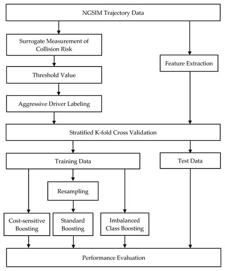 Most machine learning algorithms were designed for balanced data, and class imbalance can impact the algorithm’s performance. Unfortunately, driving behavior data is usually imbalanced. The number of positive samples, for example, aggressive drivers are outnumbered by normal drivers in real-world traffic. Aggressive drivers as the minority in the dataset may be ignored by classification algorithms, which tend to focus on predicting normal drivers. Therefore, using imbalanced data in the training of machine learning algorithms may lead to biased results and bad performance on aggressive driver recognition. Two main solutions to imbalance classification problems are cost-sensitive learning and resampling. Cost-sensitive learning assumes that the misclassification costs of normal and aggressive drivers are different. Higher misclassification costs for the minority class can force the model to better predict aggressive drivers. Resampling methods oversample the minority samples or undersample the majority samples to make the training data more balanced. Existing research tried cost-sensitive learning, or different resampling methods as data preprocessing with no modification on the existing machine learning algorithms.