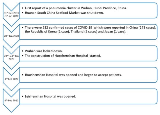 To our knowledge, our study was among one of the first studies to investigate the immediate impact of the COVID-19 pandemic on the mental health and quality of life of the general public in mainland China []. Since the pandemic is not over yet and there is a further spread of the pandemic to other countries such as Italy, it is possible that the COVID-19 pandemic will cause excessive panic and anxiety in residents living inside and outside mainland China because of the increasing number of COVID-19 cases worldwide []. Moreover, the Chinese authorities had taken measures to lock down Wuhan and the entire Hubei Province during the Chinese Spring Festival to contain the pandemic []. However, there was still a massive banquet that hosted thousands of people held over the holiday period (before the city lockdown), during a time when the relevant authorities should have been aware of the severity of the virus and taken appropriate actions to stop such banquets. Therefore, some might argue that the responses from the relevant authorities should have been faster and more proactive. At the same time, two new hospitals (i.e., Huoshenshan Hospital and Leishenshan Hospital) to combat the COVID-19 pandemic were built within only 10 days (Figure 1). However, it was important to make sure that these quarantine facilities were not designed merely for housing large numbers of people, which can, in fact, spread the infection further []. Holiday periods were also postponed and school openings were extended to reduce the numbers of new COVID-19 cases [].
