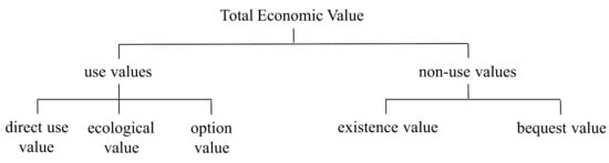 - Plottu, E.; Plottu, B. The concept of Total Economic Value of environment: A reconsideration within a hierarchical rationality. Ecol. Econ. 2007, 61, 52–61. [Google Scholar] [CrossRef]