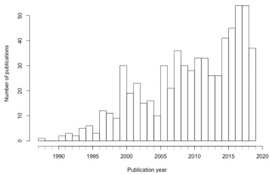 The number of publications per year is depicted in Figure 2. The first known paper on environmental valuation, published in 1987, was followed by a steady increase in number of environmental valuation-related publications over time.