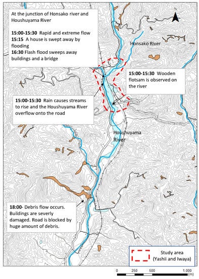 - Toho Village Debris-Related Hazard Map. Available online: http://www1.vill.toho.fukuoka.jp/file/temp/679895.pdf (accessed on 17 March 2020). (In Japanese).