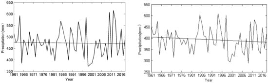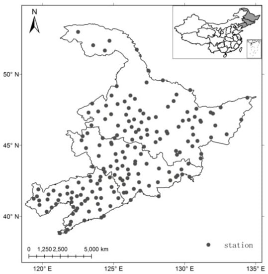 - Zhang, J.; Qian, W.H.; Ding, T. Characteristics and trends of rainfall events in Northeast China from May to September during 1956–2008. Meteorol. Mon. 2010, 38, 1–7. [Google Scholar]