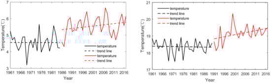- Ren, G.Y.; Zhou, Y.Q. Urbanization effect on trends of extreme temperature indices of national stations over mainland China, 1961–2008. J. Clim. 2014, 27, 2340–2360. [Google Scholar] [CrossRef]