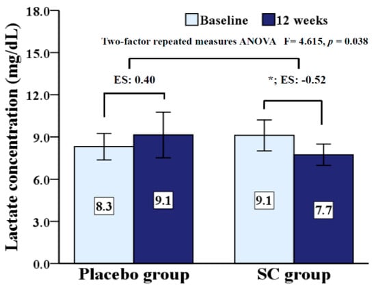 | Pyruvate (mg/dL) | Placebo group | 0.62 ± 0.2 | 0.81 ± 0.2 | 0.133 | 0.717 |