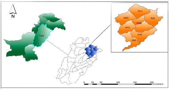 - Naqvi, A.; Asif, S.; Ashfaq, M.; Ali Adil, S.; Ahmed, A. Current agricultural production system of Punjab is vulnerable to climate change: Impact assessment. J. Agric. Res. 2017, 55, 125–135. [Google Scholar]