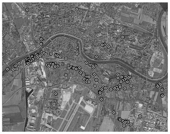 For each individual residential address, annual mean concentrations of PM10 and PM2.5 for the year 2011 were estimated through a Random Forest Machine Learning Approach (RFMLA); the entire process is fully described elsewhere [,,]. Briefly, for each day of the years between 2006 and 2015, and for each squared kilometer of Italy, we collected several spatial and spatiotemporal parameters. Spatial parameters included: geo-climatic zone, resident population, point emission sources, total emissions, mean elevation, imperviousness surface areas, light at night data, land cover data, road density data, proximity to airports, ports, sea, lakes. Spatiotemporal parameters included: PM monitored data from all the available monitoring sites, Aerosol Optical Depth (AOD) data from the NASA Multi-Angle Implementation of Atmospheric Correction (MAIAC) algorithm, daily mean air temperature, sea-level barometric pressure, precipitations, relative humidity, wind speed and direction, planetary boundary layer height, Normalized Difference Vegetation Index (NDVI), and desert dust advection days.