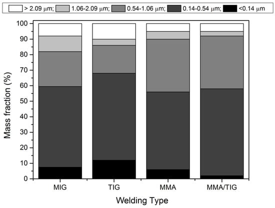 - Brand, P.; Lenz, K.; Reisgen, U.; Kraus, T. Number size distribution of fine and ultrafine fume particles from various welding processes. Ann. Occup. Hyg. 2013, 57, 305–313. [Google Scholar]