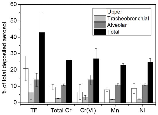 - Cena, L.G.; Chisholm, W.P.; Keane, M.J.; Cumpston, A.; Chen, B.T.; Valentin, J. Size Distribution and Estimated Respiratory Deposition of Total Chromium, Hexavalent Chromium, Manganese, and Nickel in Gas Metal Arc Welding Fume Aerosols. Aerosol Sci. Technol. 2014, 48, 1254–1263. [Google Scholar] [CrossRef]