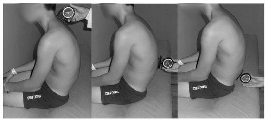Students were instructed not to participate in any training or physical activity 24 h before their assessment. All the measurements were performed on the same day, starting with anthropometric measurements. Body height was measured with Seca 213 mobile stadiometer, with an accuracy of 0.1 cm. Body mass was measured using electronic scale OMRON BF 500, with an accuracy of 0.1 kg. Data from each student were obtained during the same session. Measurements were performed by the same physician expert and participants were assessed wearing undergarments and barefoot. Students did not perform warm-up or stretching exercises before or during the measurement [35,36]. Three trials for each measure were administered/recommended. When two of those measures were equal, we chose that value. When the three measures were different, we took the average value of the two similar measurements for data analysis. Furthermore, it is very important to note that a test trial was carried out before the first measurement with the objective that the student was well informed and was absolutely sure about how to perform the test. The measurements were made in a randomized order (thoracic and lumbar sagittal curves and pelvic tilt). The study was rigorously controlled by keeping the expert and the students blinded to the objective of the study.