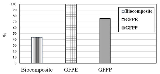Therefore, these endpoint outcomes can assist in extending discussion in terms of human health impact. The concept of DALYs has proven to be a useful metric in the assessment of human health damage in LCA [113]. Based on Figure 7, the amount of damage to human health declined on the substitution of bio-based composite for petroleum-based composite (GFPP, and GFPE) from 100% to 44%.