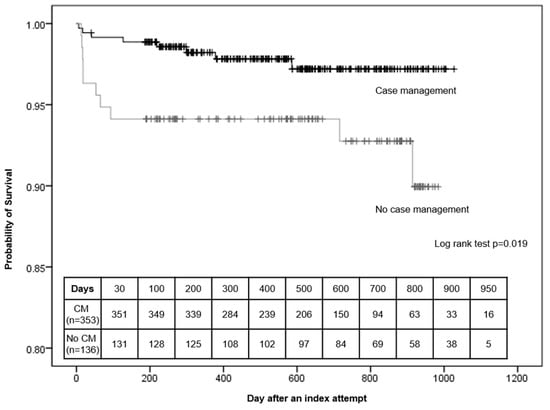 3.2. Effectiveness of the Case Management Program on Death by Suicide Reattempt