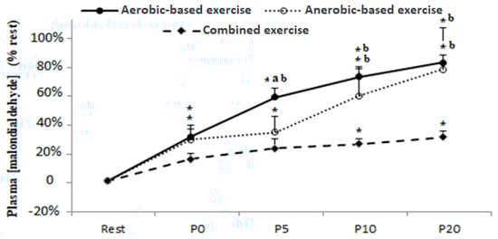 Ammar, A.; Trabelsi, K.; Boukhris, O.; Glenn, J.M.; Bott, N.; Masmoudi, L.; Hakim, A.; Chtourou, H.; Driss, T.; Hoekelmann, A.; et al. Effects of Aerobic-, Anaerobic- and Combined-Based Exercises on Plasma Oxidative Stress Biomarkers in Healthy Untrained Young Adults. Int. J. Environ. Res. Public Health 2020, 17, 2601. https://doi.org/10.3390/ijerph17072601