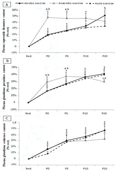 - Groussard, C.; Rannou-Bekono, F.; Machefer, G.; Chevanne, M.; Vincent, S.; Sergent, O.; Cillard, J.; Gratas-Delamarche, A. Changes in blood lipid peroxidation markers and antioxidants after a single sprint anaerobic exercise. Eur. J. Appl. Physiol. 2003, 89, 14–20. [Google Scholar] [CrossRef] [PubMed]
