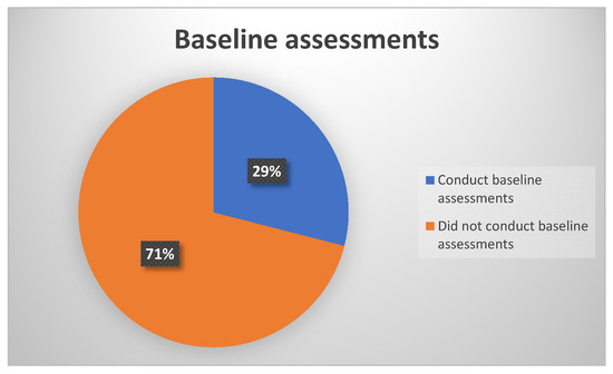 In looking at the practice of performing baseline assessments prior to treatment initiation or within 24 hours post treatment initiation, results, as depicted in Figure 2, showed that more than half of the participants 71% (n = 22) did not conduct baseline assessments prior to treatment initiation for all their patients on treatment with ototoxic drugs. Consequently, only a third 29% (n = 9) of the participants reported conducting baseline assessments for 80%−100% of their patients’ assessments. This 29% comprised of audiologists who work in public sector facilities dedicated to the treatment of TB, where their main job is to conduct ototoxicity assessments and management.