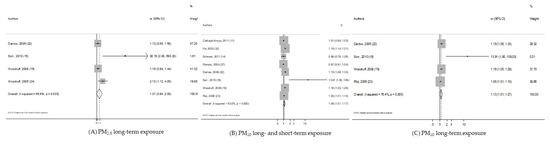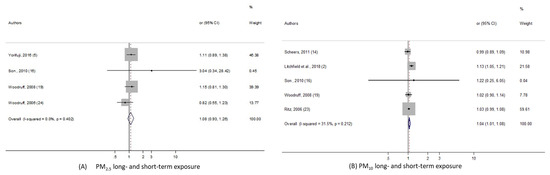 | By trimester of pregnancy | TSP, PM10, PM10-2.5, and PM2.5 | Son et al., 2010 [27] | |