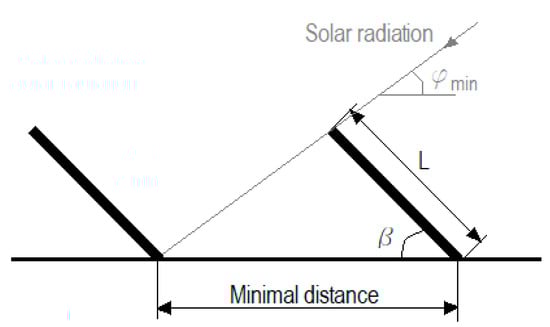 where L (mm) is the length of the solar collector, β (°) is the tilt angle that the solar collector forms with the horizontal surface and φ