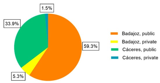 The hospitals were classified according to the following categories: geographical location (Badajoz or Cáceres), type of management (public or private) and size of the hospital (<120 beds, 120–300 beds and >300 beds). The study by García-Sanz-Calcedo et al. [
