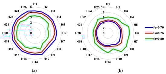 An iterative process on the MetaSol methodology was carried out to check the upper limit of possible solar contribution, taking into account the lower and upper limitations described. A solar factor greater than 0.8 could not be achieved; therefore, three situations were considered to be feasible and representative of the percentage of solar contribution (solar fraction, fs) that can be achieved: 70% (minimum), 75% (intermediate) and 80% (maximum). For each level of this factor, the necessary capturing area was estimated, knowing the value of global horizontal solar radiation for each location and the conversion factor k that relates it to the radiation on the tilted plane for each latitude (embedded in MetaSol methodology).