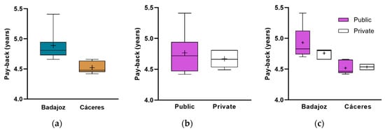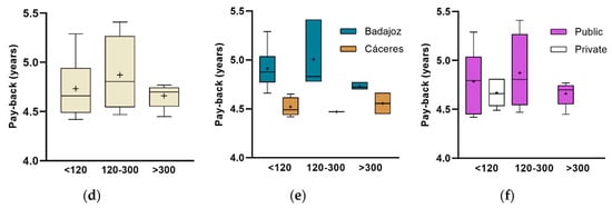 It was also found that for the solar factor of 0.70, the best payback values were obtained both for the overall investment and by separating the hospitals by province and by management. The hospitals in the province of Cáceres presented better payback data at all levels.
