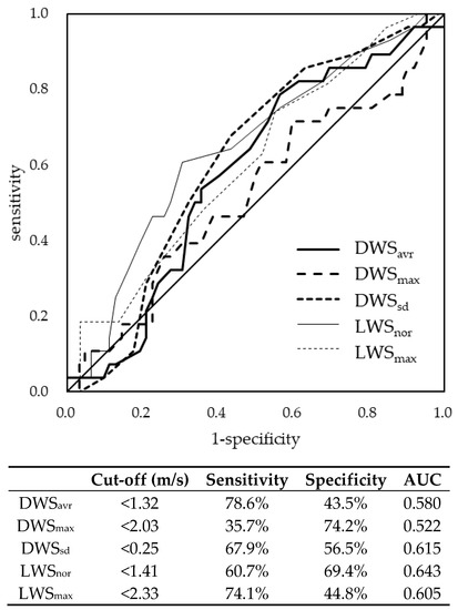 | n | DWSs (m/s) | LWSs (m/s) | p† | ICC (95% CI) | p‡ | |||