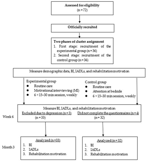 APA StyleChen, H.-M., Lee, H.-L., Yang, F.-C., Chiu, Y.-W., & Chao, S.-Y. (2020). Effectiveness of Motivational Interviewing in Regard to Activities of Daily Living and Motivation for Rehabilitation among Stroke Patients. International Journal of Environmental Research and Public Health, 17(8), 2755. https://doi.org/10.3390/ijerph17082755