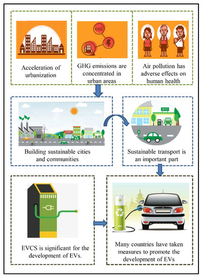 The relationship between electric vehicle charging stations (EVCS) and sustainable cities.