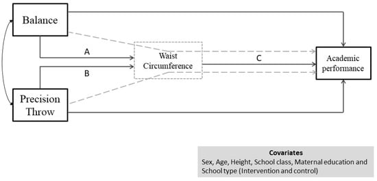 - Lima, R.A.; Larsen, L.R.; Bugge, A.; Andersen, L.B. Physical fitness is longitudinally associated with academic performance during childhood and adolescence, and waist circumference mediated the relationship. Pediatr. Exerc. Sci. 2018, 30, 317–325. [Google Scholar] [CrossRef] [PubMed]