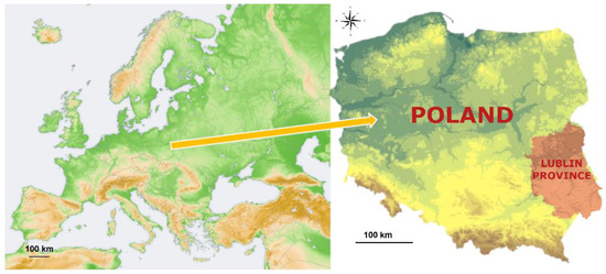 - Available online: https://www.google.com/maps/place/lubelskie/@51.2644085,21.7604799,269835m/data=!3m2!1e3!4b1!4m5!3m4!1s0x4723ad1204d54b2b:0x1017cadc5e4c040!8m2!3d51.2493519!4d23.1011392 (accessed on 15 November 2019).