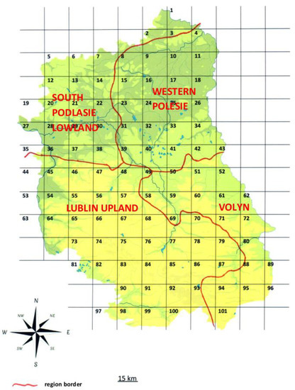 - Available online: https://pl.wikipedia.org/wiki/Plik:Lubelskie_mapa_fizyczna.png (accessed on 15 November 2019).